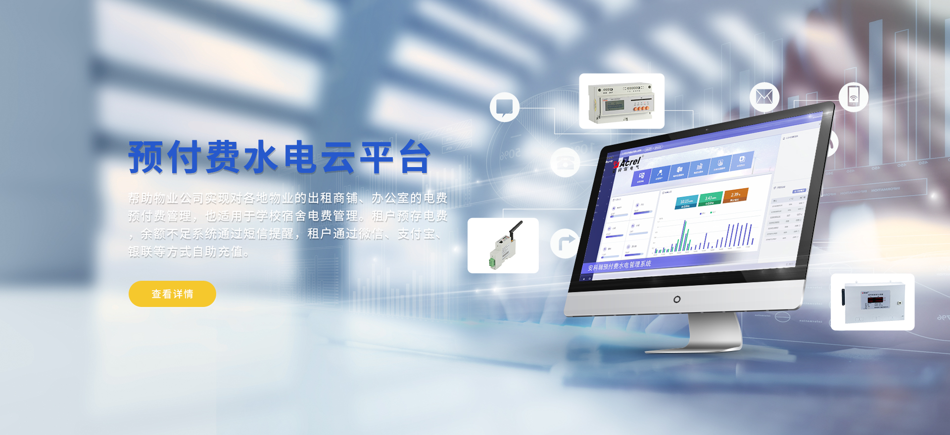安科瑞提供的解決方案包括Acrel-EIoT能源物聯網云平臺、變電所運維云平臺、安全用電管理云平臺、環保用電監管云平臺智慧消防云平臺能源管理云平臺、工業企業能源管控平臺、遠程預付費云平臺、餐飲油煙監管云平臺、電動汽車/電瓶車充電樁收費管理云平臺、電力監控/無線測溫系統、電能質量治理系統、電氣火災監控系統、消防設備電源監控系統、防火門監控系統應急照明和疏散指示系統、智能照明控制系統、醫用隔離電源絕緣監測系統等,幫助用戶實現能源智能化、可視化、精細化管理,提高用能效率和用能安全,為企業節能降耗和實現能源數字化建設提供數據服務。